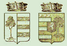 I - um escudo em campo vermelho, com uma oliveira verde, arrancada de prata, frutada de ouro.